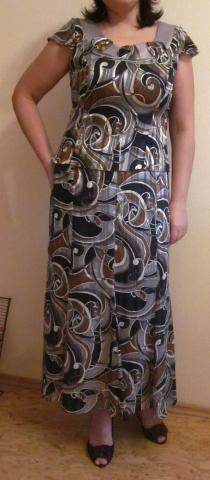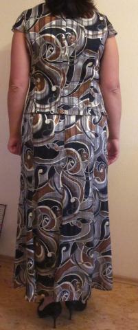 Dviejų dalių proginis kostiumėlis, dėvėtas vieną kartą per vestuves. Palaidinė ir sijonas 44 dydžio. Kainavęs 280lt. Išmatavimai: Palaidinė (šone yra užtrauktukas, kurio nesimato): Per krūtinę 108cm, ilgis nugaroje 48 cm. Sijonas (šone užtrauktukas): Liemuo 88cm, ilgis 90cm.