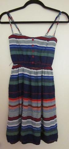 Vasarinė Pull&Bear suknelė, dydis S, tinka ir XS. Su pamušalu. Vienintelis trūkumas - nutrūkusi viena kilpelė, į kurią galima verti diržiuką (galima nusikirpti abi). Ilgis (be petnešėlių) 65 cm, per liemenį ir nugaroje - guma, kuri puikiai tempiasi. Mažai krūtinei.