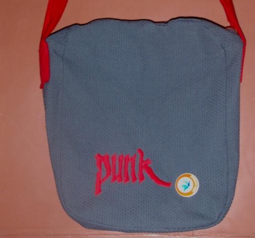 taše per petį su užrašu punk, gerai išsilaikiusi, daug joje telpa...kiekvieno panku judėjimui prijaučiančio individo svajonė..:)