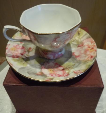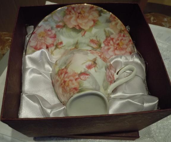 naujas, dėžutėje porcelianinis puodelis