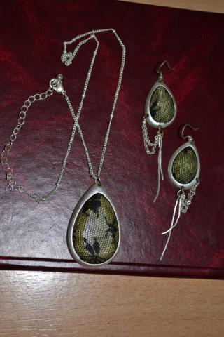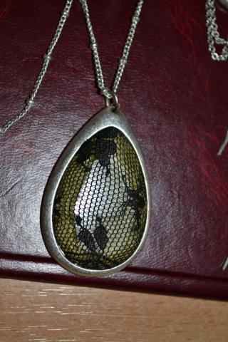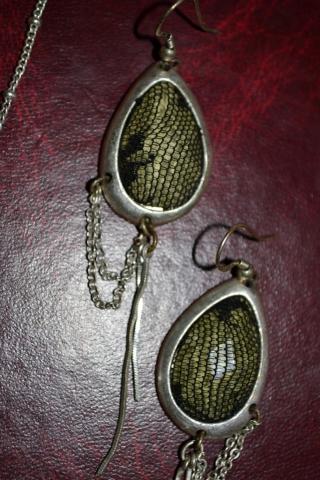 Aptrauktas plonyčiu nėriniu, auskarų kalbiukai pakeisti į sidarbrinius.