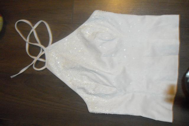 drabuzelis papuostas karoliukais. uzsirisa per kakla, o nugaroje uztrauktukas uzsiseka.parduodu uz 23lt