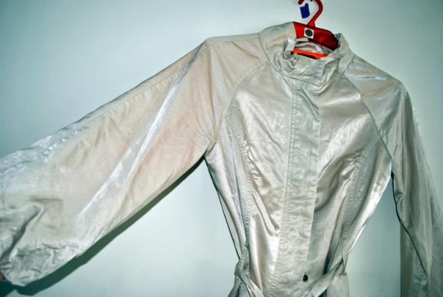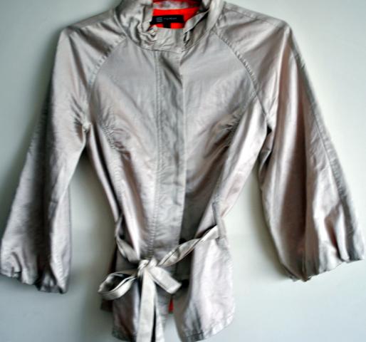 Gražus, puošnus "Monton" švarkelis su dirželiu. Rankovės pūstos, gražus oranžinės spalvos pamušalas.