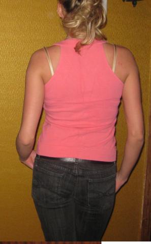 Stilinga rožinės spalvos maikutė. Nešiota, bet nenunešiota, be žymesnių defektų. Dydis - 38 (S/M)