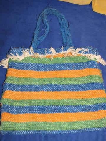 Rankų darbo rankinė, technika - austa medžiagos juostelėmis. Niekaip nepriderinu, ir neteko nešiot.