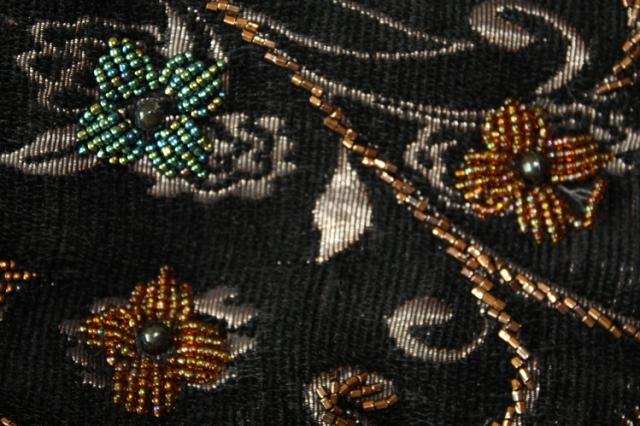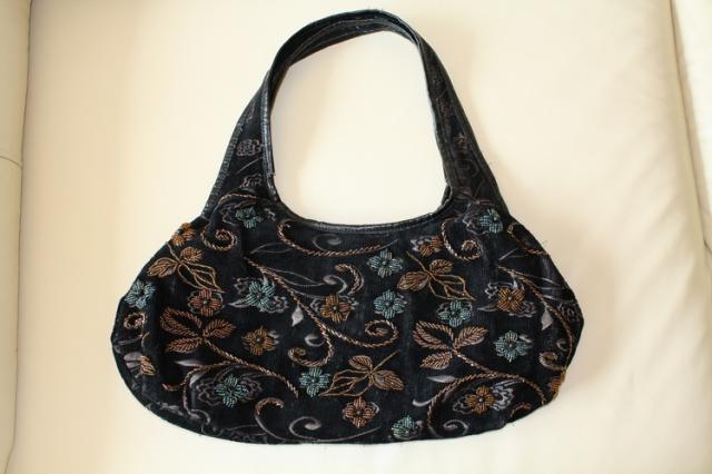Talpi medžiaginė rankinė siuvinėta karoliukais. Galima nuardyti tik karoliukus.