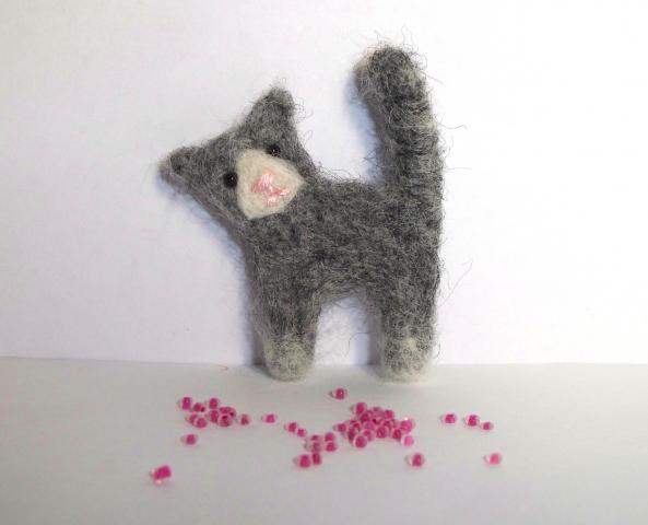 Miela katytė - sagė iš veltinio mano rankų darbas :) Katytės ūgis 5cm su uodega.