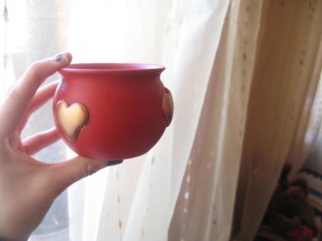 šiaip vazonėlis molinis,su 3 auskinėm širdutėm,bet pvz aš jame laikiau auskarus ir grandinėles,labai labai mielas.