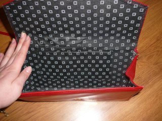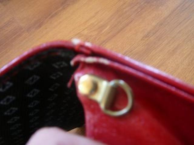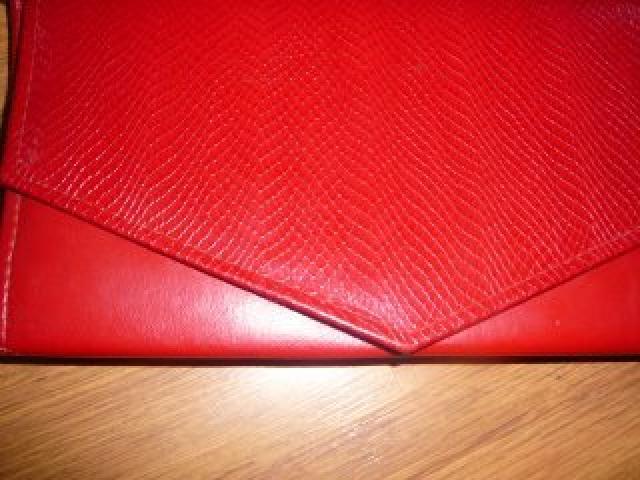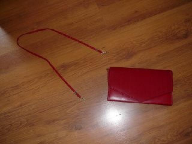 raudona , odinė, su gyvatės odos imitacija priekija . yra dirželis ,