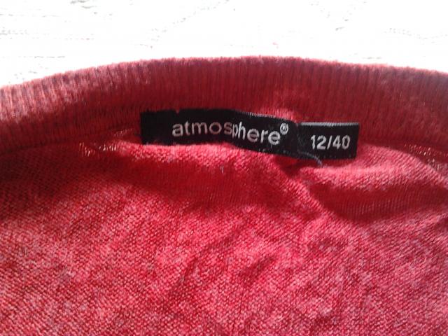 Ilgas, plonas ir raudonas megztukas, universalaus dydžio, nes tamposi. Atmosphere.