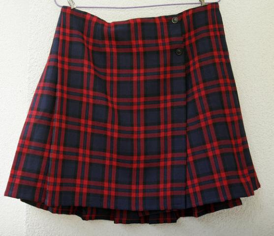 Raudonas languotas sijonas pasiutas pagal užsakymą,užpakali klostuotas.Plotis liemens 40cm ilgis 44cm
