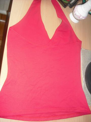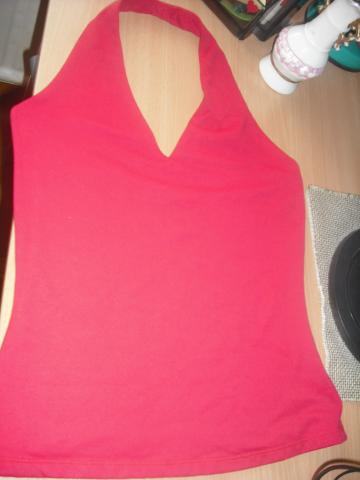 Tai raudonos spalvos bliuskutė per kaklą. Nei karto nenešiota tačiau nėra etikečių. Manau tiktų ir S nešiojančioms panelėms.