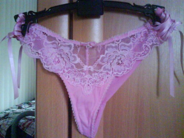 Visiškai nauji rožiniai stringai.Nuotraukoje spalva neša į violetinę, tačiau ji yra barbiška rožinė.Priekyje yra įsiūtas karoliukas (2foto), šonuose yra atlasiniai tokios pat spalvos bantukai, kuriuos galima susirišti pagal norus.Apatiniai nenešioti,