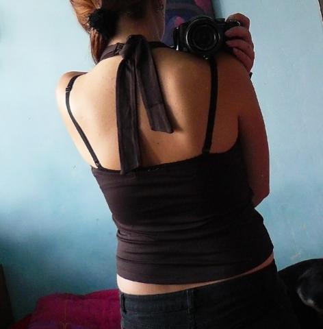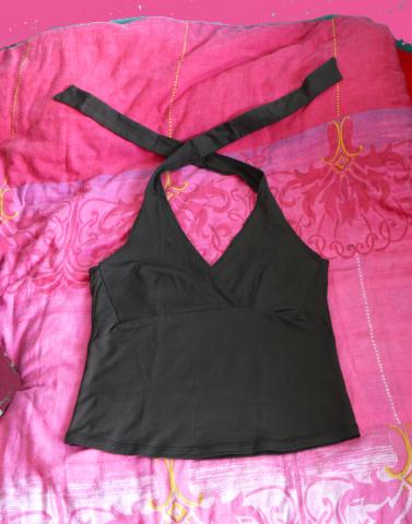 RIVERISLAND 14. 96% polyamide 4% elastane. Rudos spalvos atspalvis arčiausiai realybės būtų trečioje nuotraukoje, dailiai susiriša ant kaklo. Dydis S, tiktų krūtinė 80B arba didesnė. Medžiaga slidi.