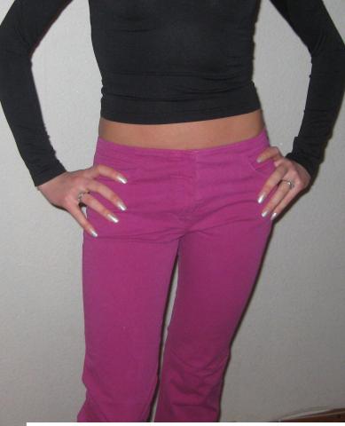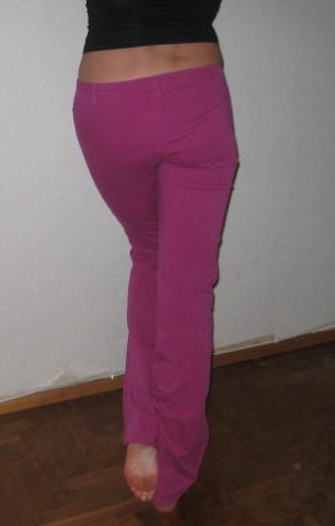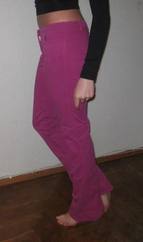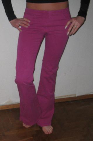 Alyvinės spalvos platėjančios kelnės (galima ir susiaurint:). Be defektų, beveik naujos.