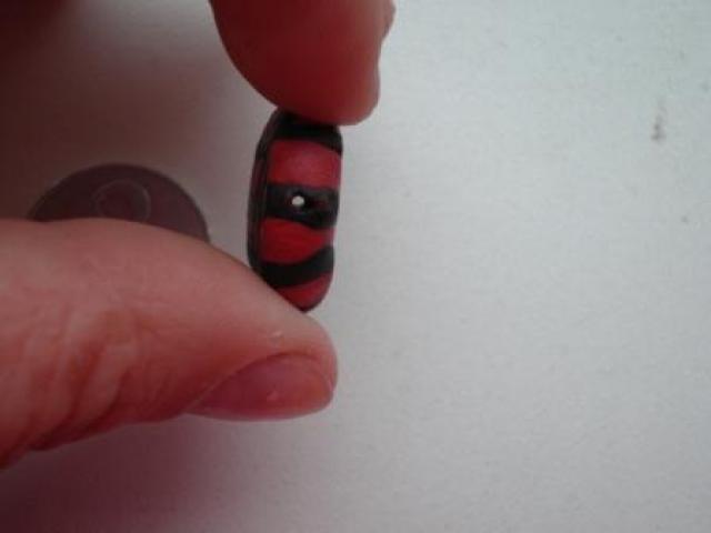 Iš modelino.Padaryta skylutė tai galima prisisiūti,pasikabinti ar pan.