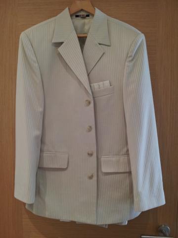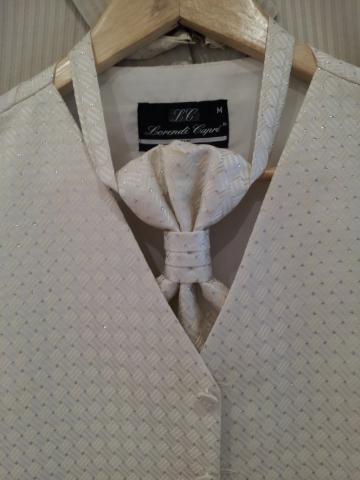 Vieną kartą per vestuves dėvėtas šampano spalvos vyriškas kostiumas (tikimės, kad jau nebeprireiks tai parduodam :))) Pridedam ir liemenę su kaklaskare (labai puošniai atrodo) Tiks 185 cm jaunikiui (žemesniam galima trumpint kelnes).