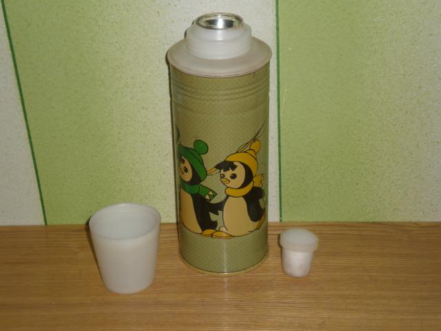 Senas tarybinis termosas su pingvinais kavai, arbatai