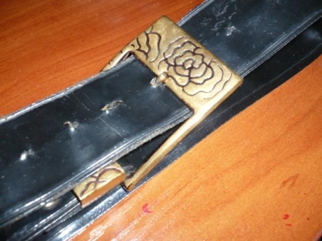 Senovinis dirželis, lakuotas. Daugoka skylučių