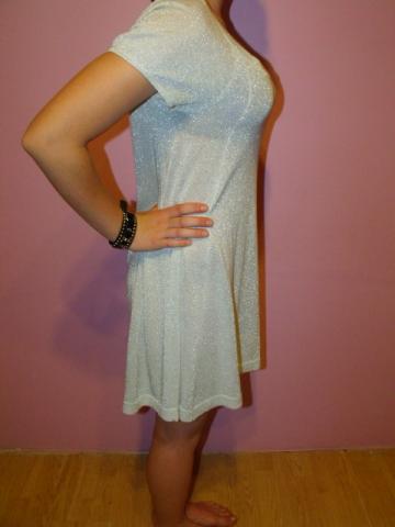 Suknelė puikiai tinkanti laisvalaikiui, dydis tinkamas M/L, spalva - sidabrinė, blizgi.