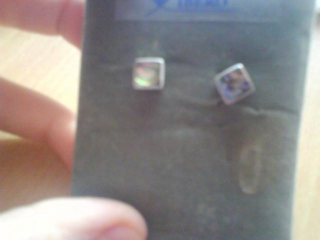 sidabriniai kvadrateliai,viduje kazkoks akmuo