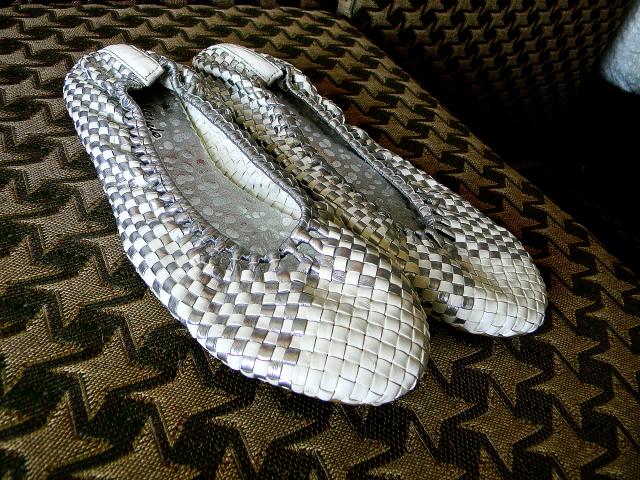 Nauji, nenešioti "In Style" bateliai. Sidabrinės ir baltos spalvos, suvarstyti.