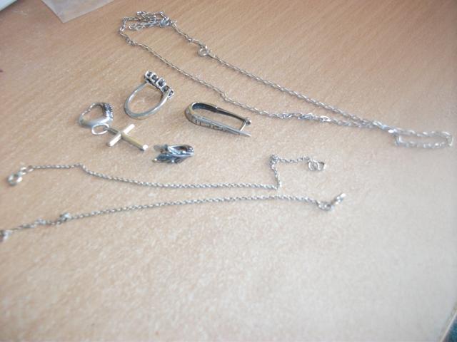 sidabro lauzas , greandineles geros, 2 ant rankos 1 ant kaklo, pakabuciai 2, 1 ziedas ir du auskarai