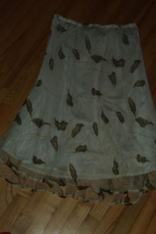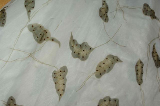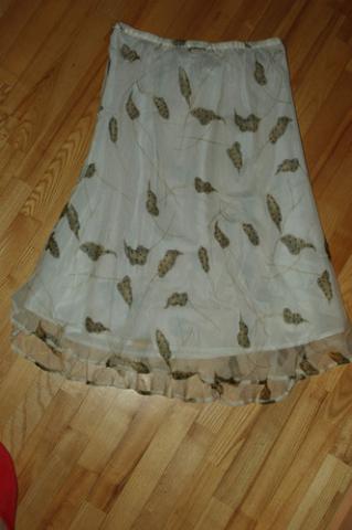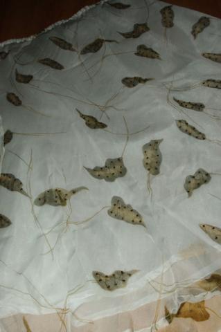 Baltas, labai lengvas, toks puosnus, labai graziai krenta . Ant gumos tad dydis reguliuojas.