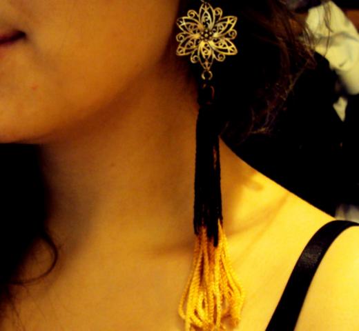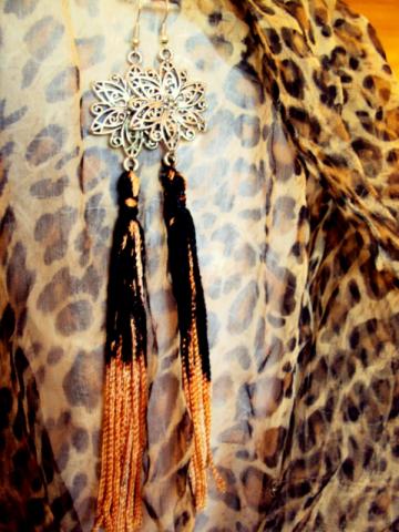 Silko auskarai (juodi su svelniai orandzine spalva)
