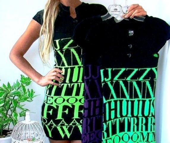 Labai grazi megzta suknyte-tunika su baltom, salotinem raidem, siltute- puikiai pabrezia figutyre! Dydis universalus!