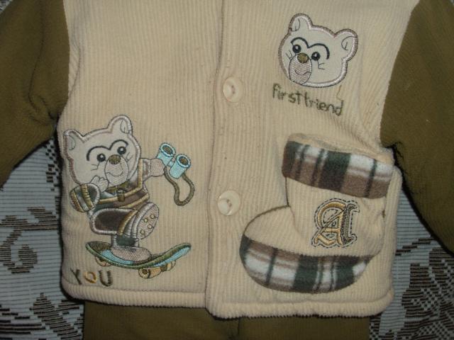 Šiltas vaikiškas kostiumas kelnės ir švarkiukas. 1m vaikui