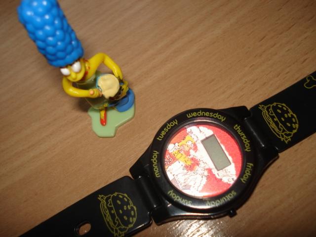 Laikrodzio pasibaigusios baterijos,paveikslelis jame judantis(kai pasuki laikrodi vienaip rodo haumeri kepanti o kitaip kai jis jau sudegina ;D) ant laikrodzio yra uzrasytos dienos (angl.) tai kai praeina diena prasukti galima ;D Statulele kinderine