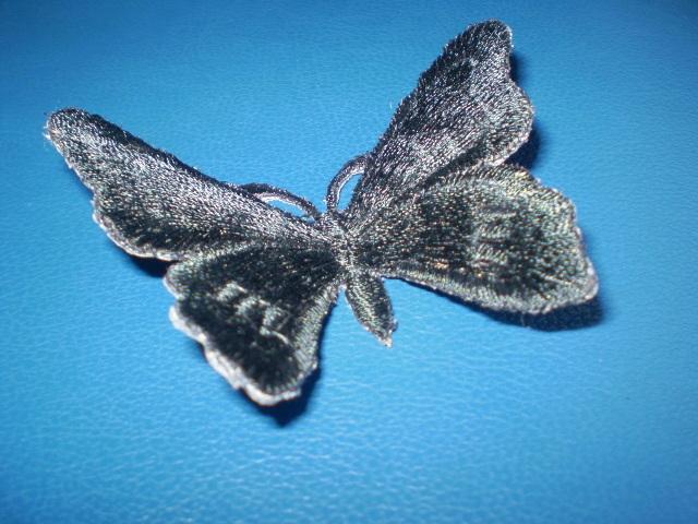 Kitoje pusėje tokia medžiaga kaip guma.Tai uždėjus ant norimos vietos reikia iš blogos pusės su lygintuvu pravažiuot ir tada prilips tas drugelis.;D