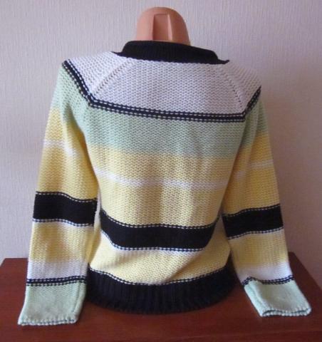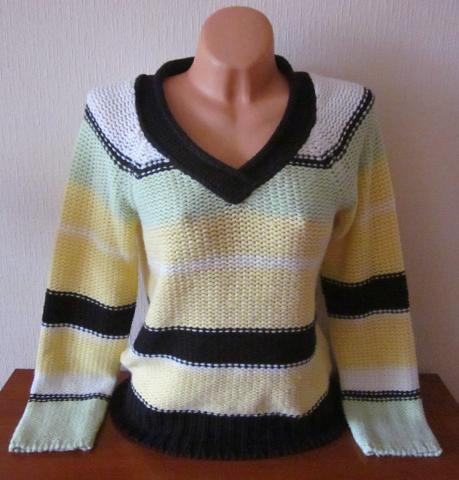 Spalvotas megztinis, L dydis, defektų nėra. Išmatavimai (ramybės būsenoje): Ilgis 66 cm, Krūtinės apimtis 52x2 cm, Rankovės ilgis nuo pažastes 47 cm