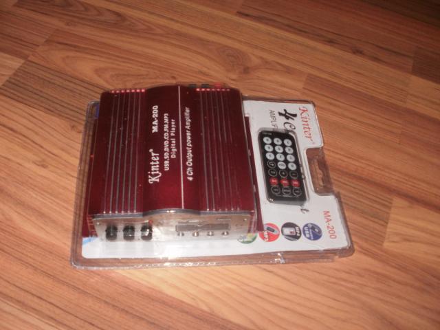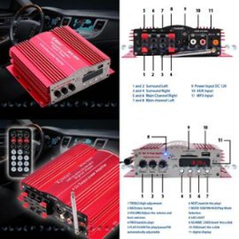 Tai puikus stiprintuvas kuri galite naudoti ne tik mašinoi, moto.. , bet ir lauke būdamas su draugais. Tai puikaus garso stiprintuvas turintis 4kanalus, turi radija, galios 400w (rms): 41W+41W+41w+41W. Galite leisti muzika iš savo telefono, mp3, atmintuko, SD/MMC korteles +Pultas. DC12V.