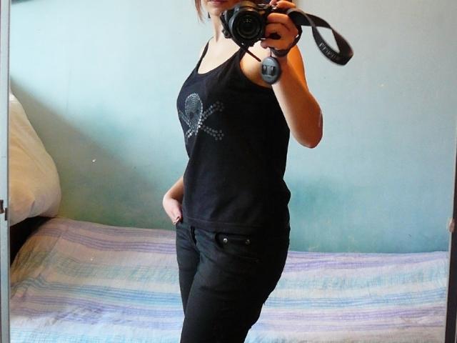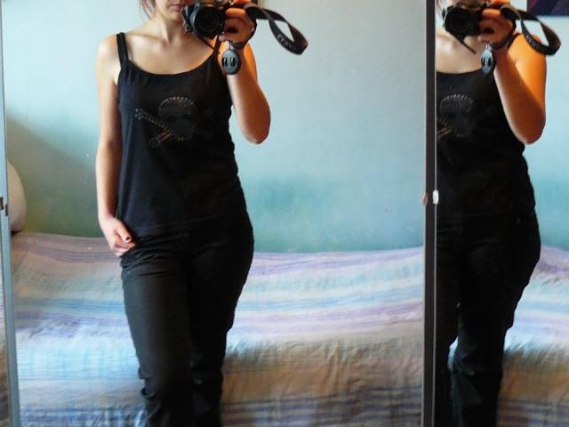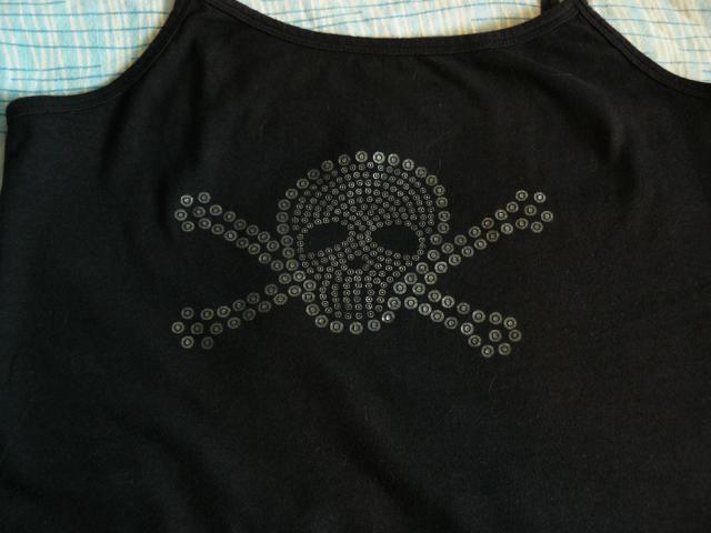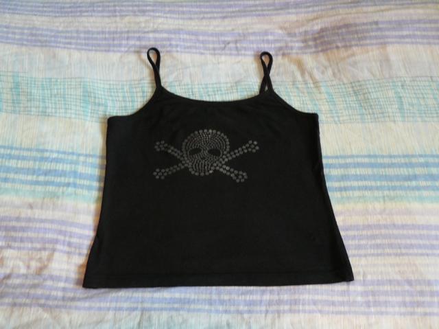 Patogi palaidinė. Aišku ją gali nešioti ir S dydis, nors gal būt didoka ir labiau tiktų M, gal netgi mažam L. Aš nešioju S/M ir ja esu patenkinta, nors gal ji ir platoka man :) Kaukolė nėra visiškai simetriškai per vidurį, bet tai tik duoda žavesio :)