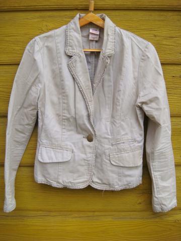 Kokybiškas įliemeniuotas švarkelis, dvejos kišenės, užsegimas viena saga. Džinsinis,100 proc. medvilnė. Iš JAV. Be defektų.