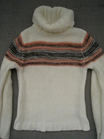 S dydzio, dramblio kaulo spalvos megztinukas su pagyvinimu prie kaklo, graziai aptempia, ilgis kazkur iki dirzo