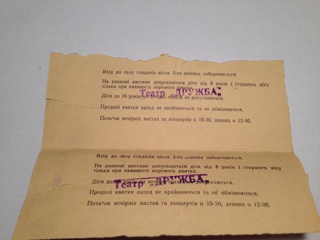 Teatro bilietai 1990 "Druzba"