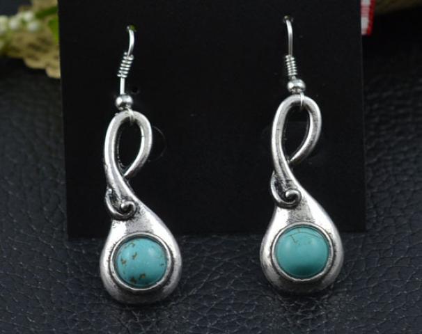 Nauji auskarai , Kaina- 27 + siuntimo islaidos ( galimas atsiemimas Kaune) Nemainau. · Pagaminta iš: Tibeto sidabro lydinys · Akmuo: Turkis · Dydis: 3.4x1.33cm