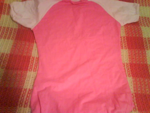 naujas, puikus, triko, priedu prikabina, sviesios rozines spalvos gumyte. antroji foto, kaip atrodo is nugaros
