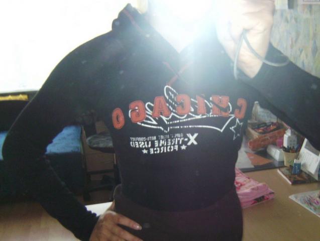 Trumpas megztukas, ilgomis rankovėmis, su kapišonu. Patogus, tinka 36-38 dydžiams :)