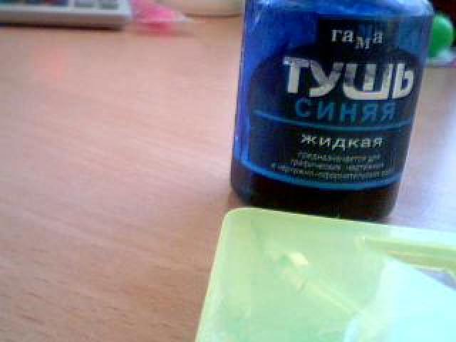 Melynas ir juodas tusas, bet nuo stovejimo sudziuvo. Plunksnos ir yra. Naudotos