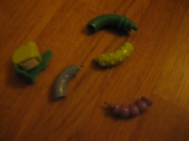 Tušinukas - Špargalkė. Gale yra susukti lapeliai užsirašyti am nors. Iš vieno tušinuko susideda trys tušinuko spalvos