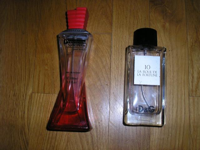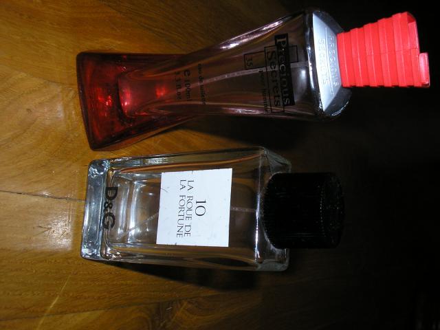 Tusti buteliukai nuo kvepalu, po 1eur. D&G "La roue de la fortune", "Precious secret"