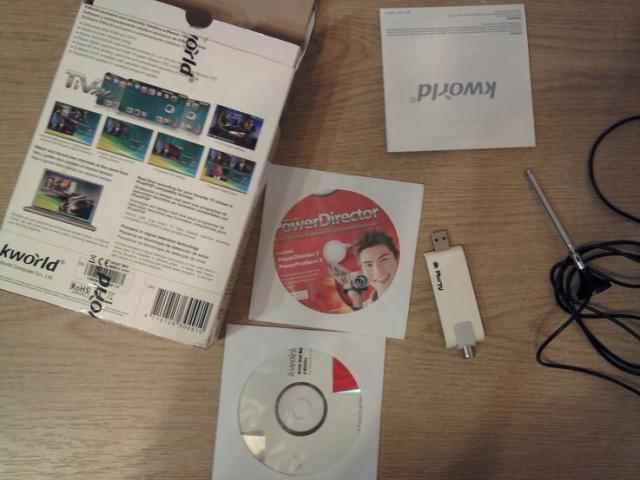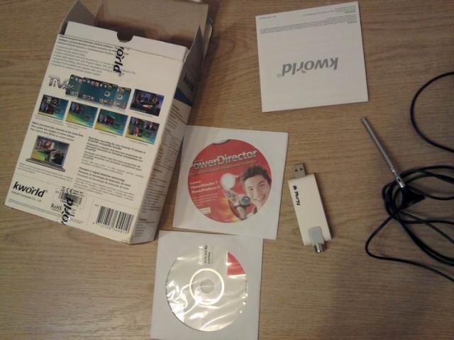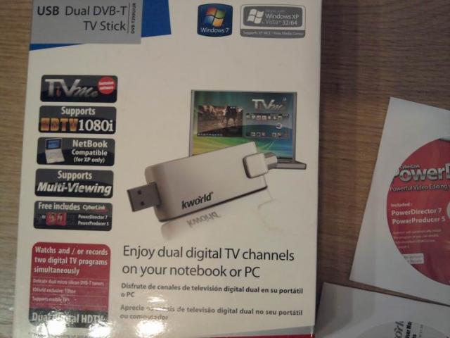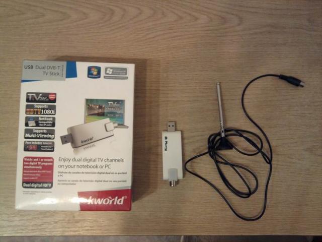 Kworld PlusTV (modelis KW-DVB-T 399UR) USB TV tuneris skaitmeninei TV žiūrėti. Komplekte yra imtuvas, antena, CD. Susitikus parodyčiau kaip veikia ant notebooko.