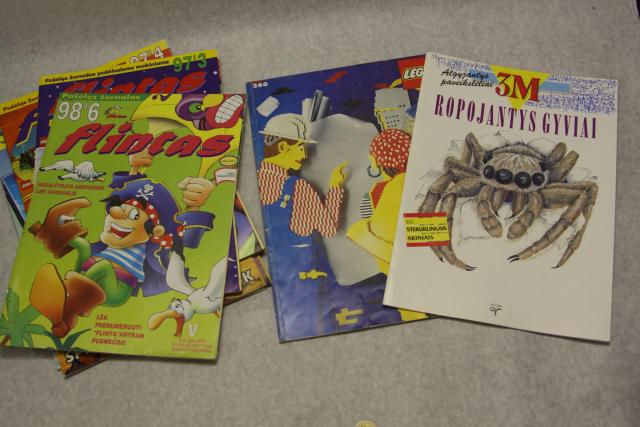 Flintas, LEGO retro katalogas, 3D paveiksleliai vabzdziu ir pan. (nepamenu ar ideti tie akiniai melynai raudoni ziurejimui)