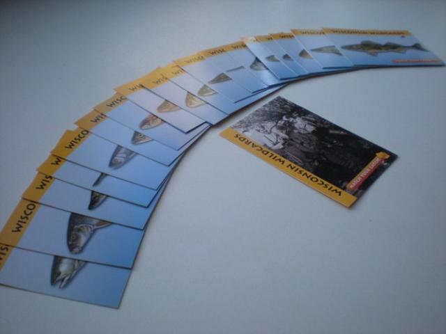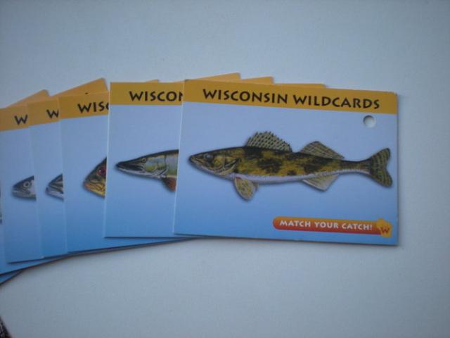 Kortelės su žuvų paveikslėliais, anglų kalba.