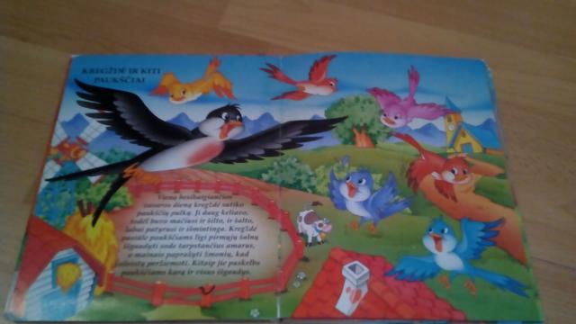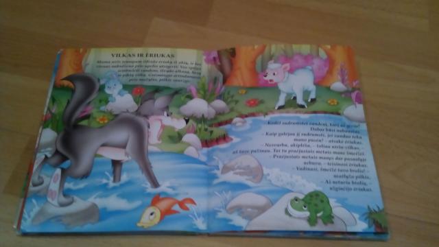 labai myleta pasaku knygute,trumpos,bet greitai isisavinamos pasakeles maziesiems,buvo vietomis lapai pabyreje,bet sutvarkyta,ryskus piesinukai