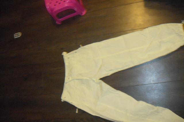 labai dailus ir grazus drabuzelis. kelniu gale yra sniureliai, galima susitraukti, arba galima tiesias nesioti.parduodu uz 32lt